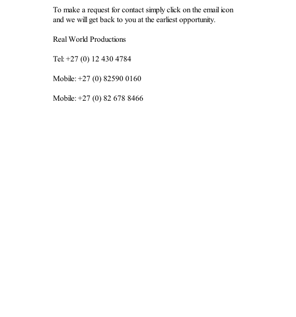 © 2012 - Real World Productions  All rights Reserved - Privacy Policy